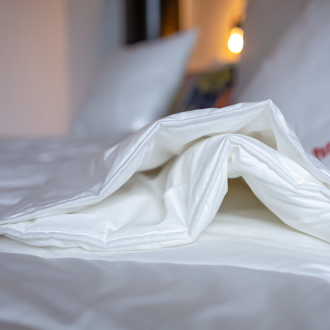 Die Vierjahreszeitendecke ist der individuelle Begleiter für das ganze Jahr. Der Bezug besteht aus 100% Bio-Baumwolle kbA.